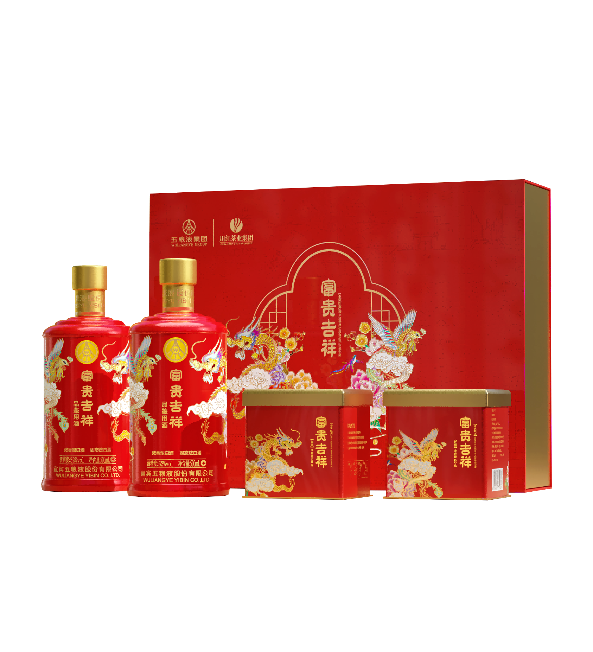 五粮液股份 富贵吉祥茶酒礼盒 非遗红茶 52%vol 500ml*2瓶+红茶30g*2盒