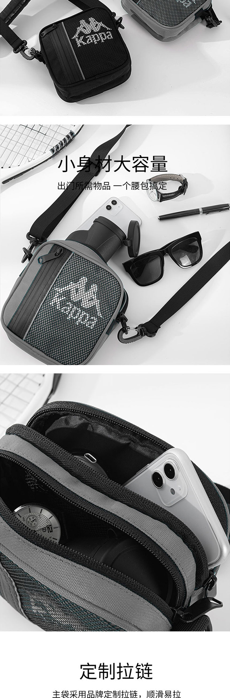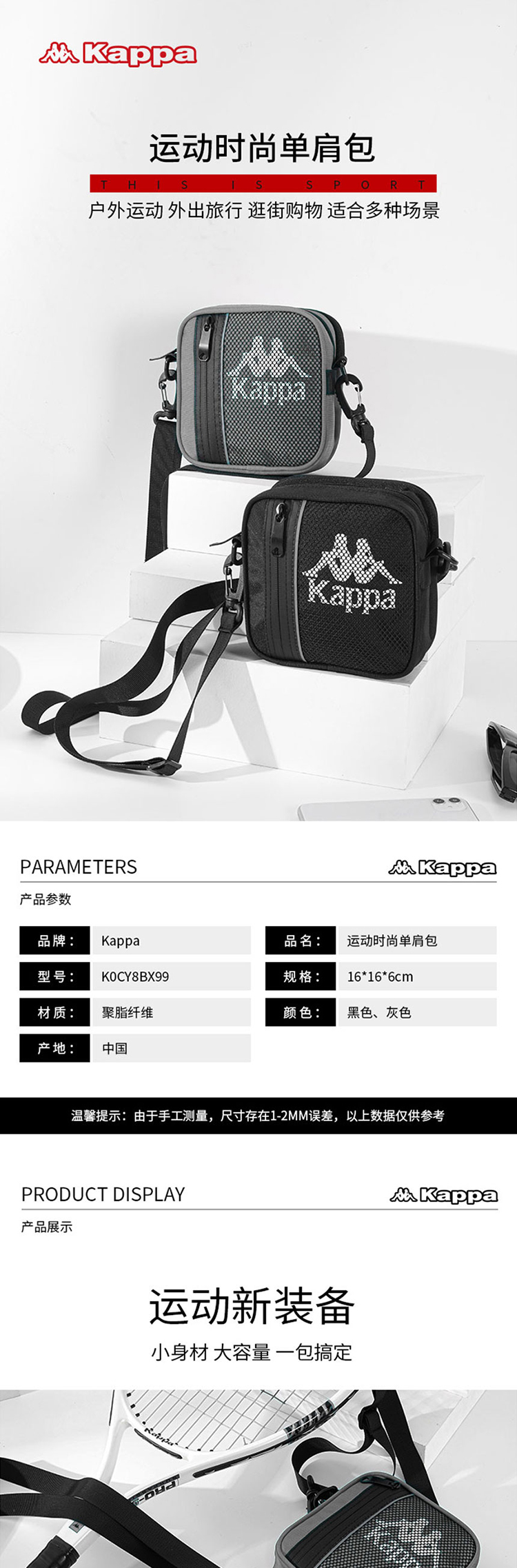 KAPPA 运动时尚单肩包斜挎包 K0CY8BX99L 黑色