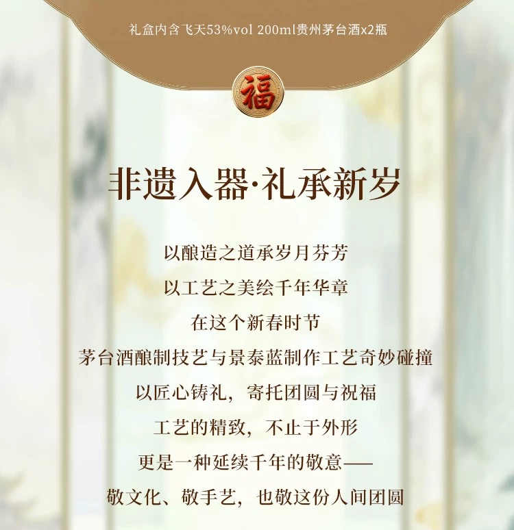 茅台飞天 新春纳福季 2026年新春礼盒 酱香型白酒 53%VOL 200ml*2