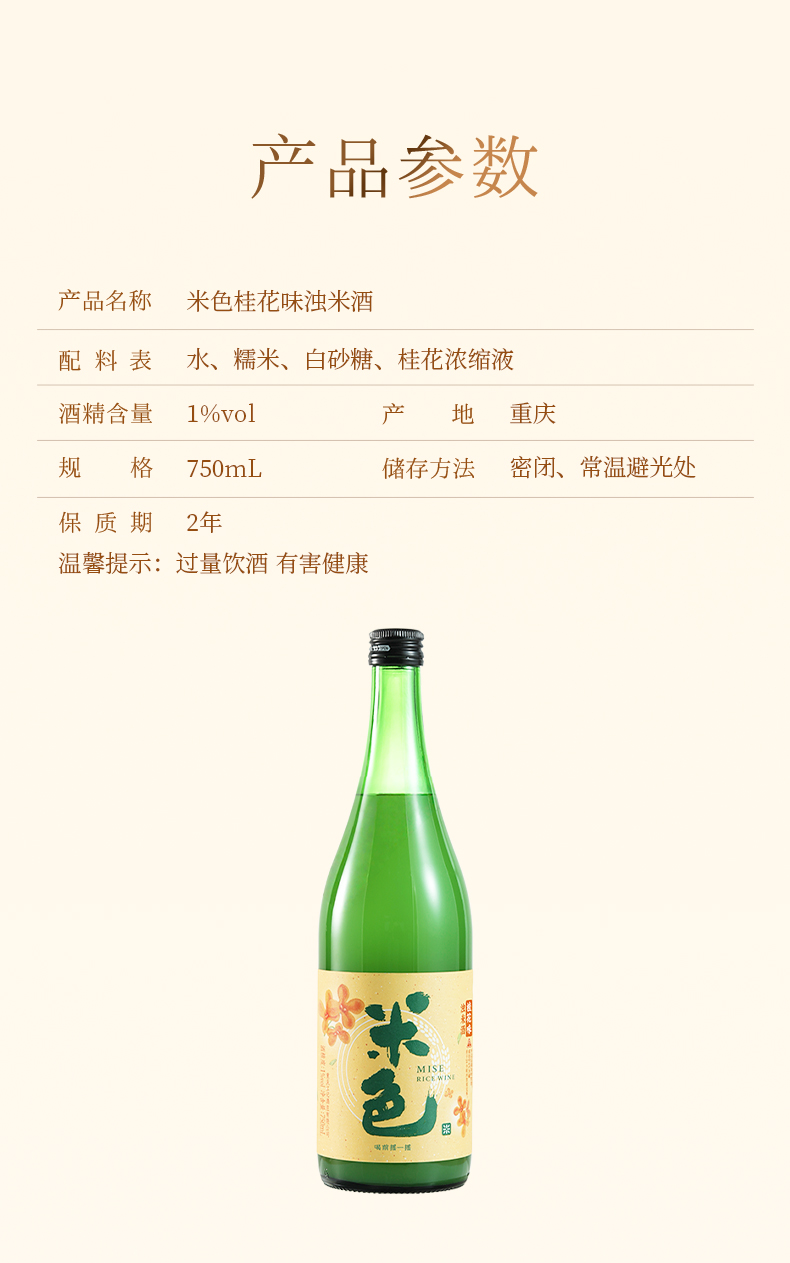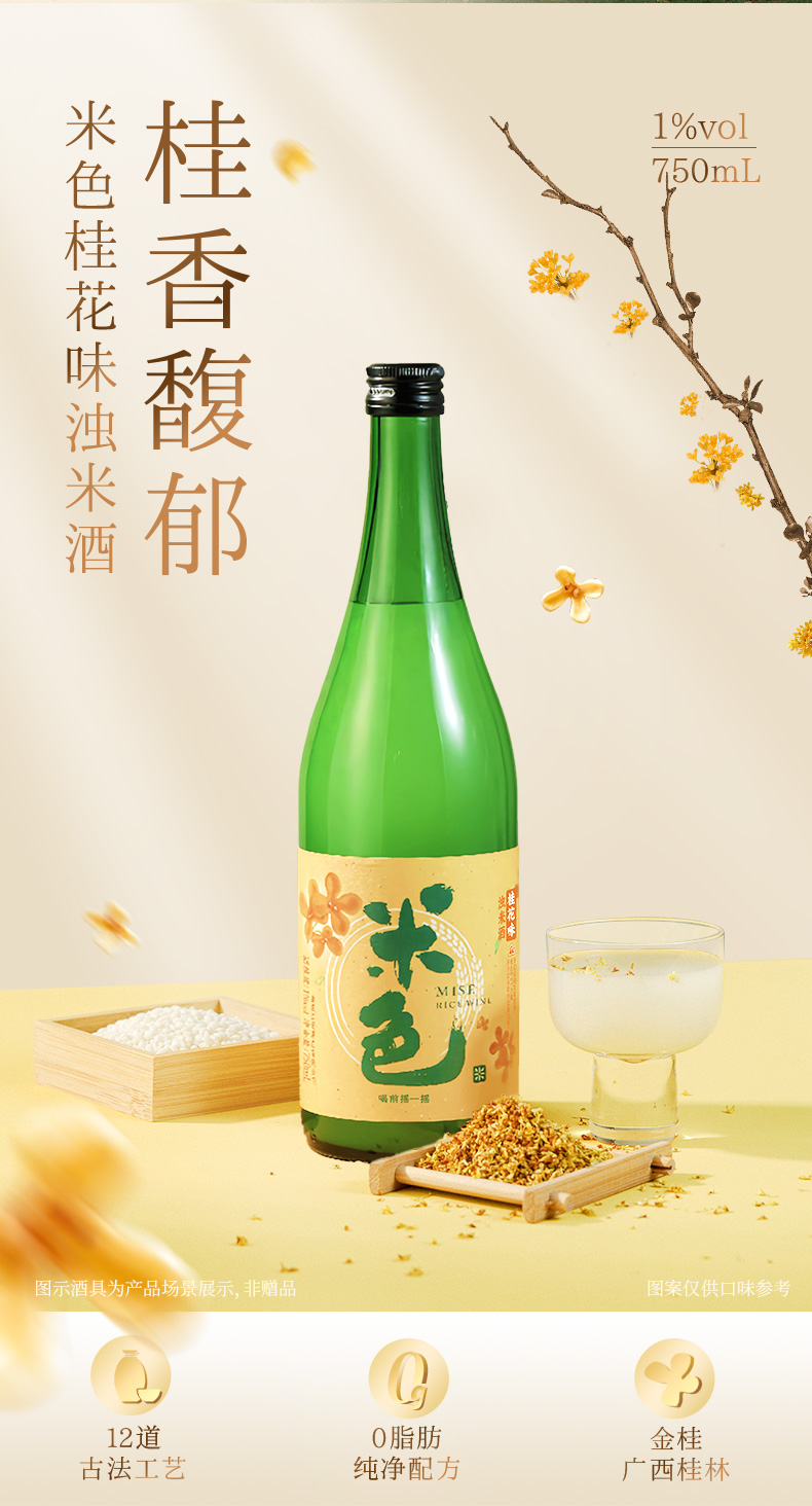 米色 桂花味浊米酒 750ml*1 赠山岩杯*1